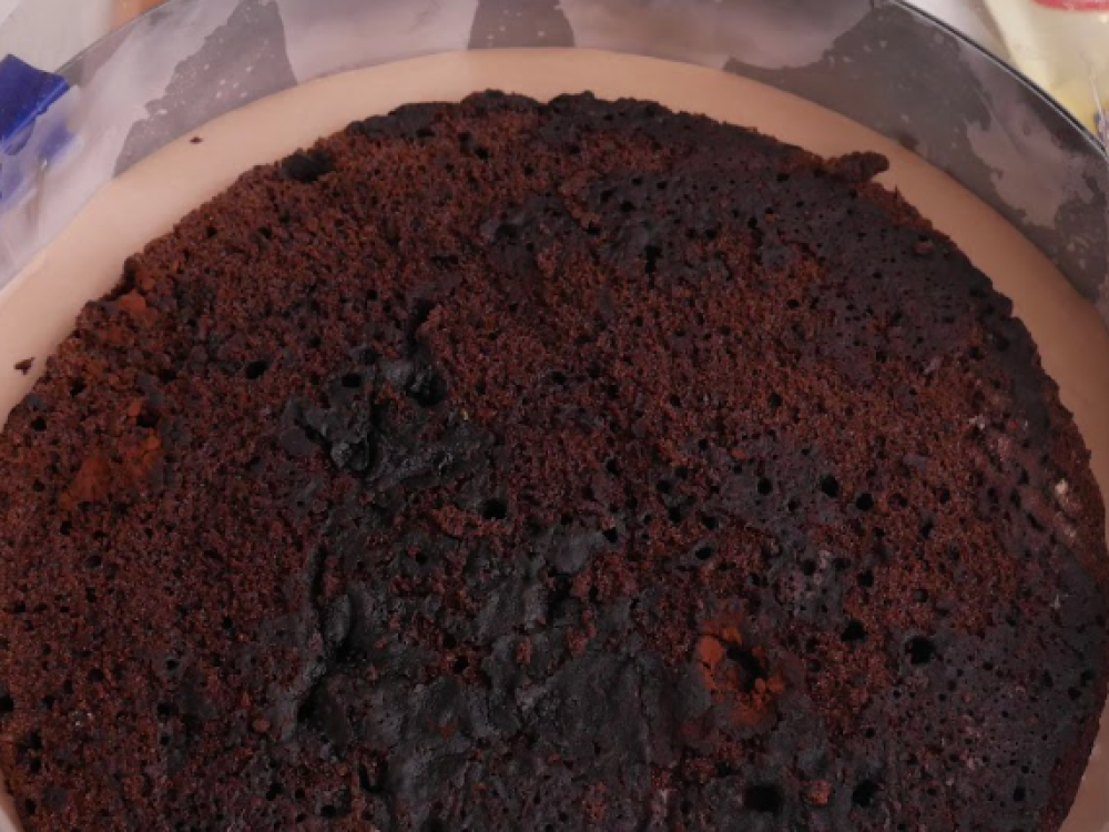 Готовность бисквита проверяем деревянной шпажкой. Готовый бисквит должен получиться пышным, светло-коричневого цвета, а при нажатии пальцами пружинить и восстанавливать форму. Остужаем бисквит на решетке до комнатной температуры. Оборачиваем пищевой пленкой и ставим в холодильник. В дальнейшем это не позволит бисквиту крошиться и впитывать мусс. Приступаем к приготовлению апельсинового компоте.