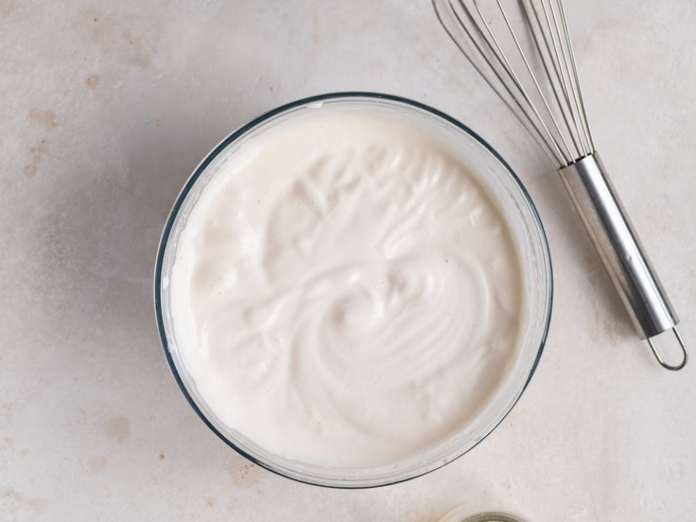 В процессе взбивания вливаем растительное масло (40 мл).