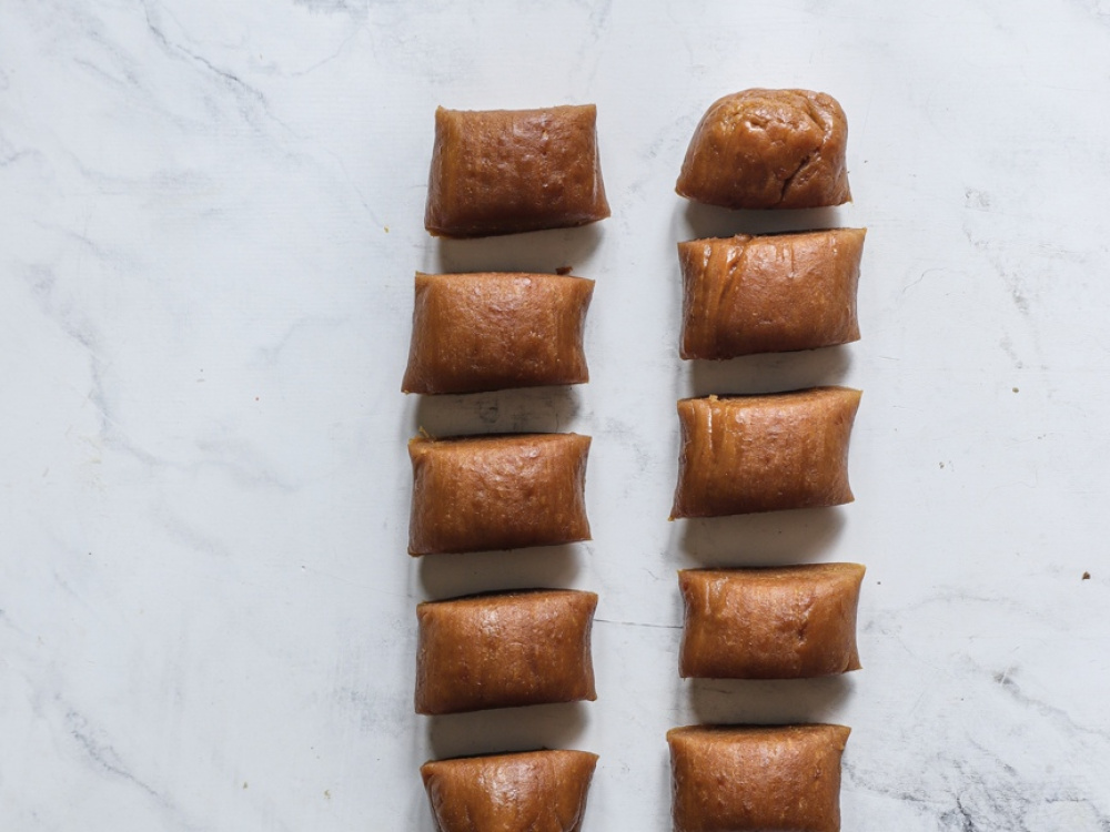 Тесто делим на 10 равных частей, формируем шарики. Каждый раскатываем на пергаменте, посыпанным мукой.