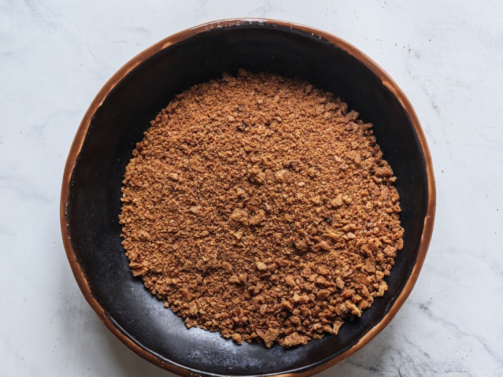 1-2 коржа измельчаем в блендере в крошку.