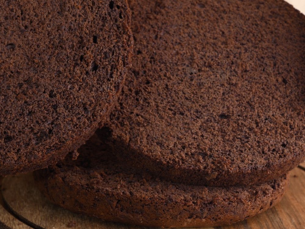 Готовим шоколадный бисквит. Смешиваем готовую смесь «Бери и пеки. Шоколадный торт и капкейки» Dr. Bakers (1 уп.) с мукой (110 г), сахаром (150 г), яйцами (3 шт.) и сливочным маслом комнатной температуры (150 г) согласно инструкции на упаковке. Форму для выпекания не смазываем. Выпекаем при 170°C 45-50 минут. Проверяем готовность деревянной шпажкой.