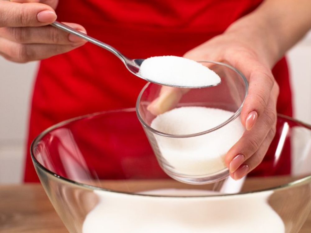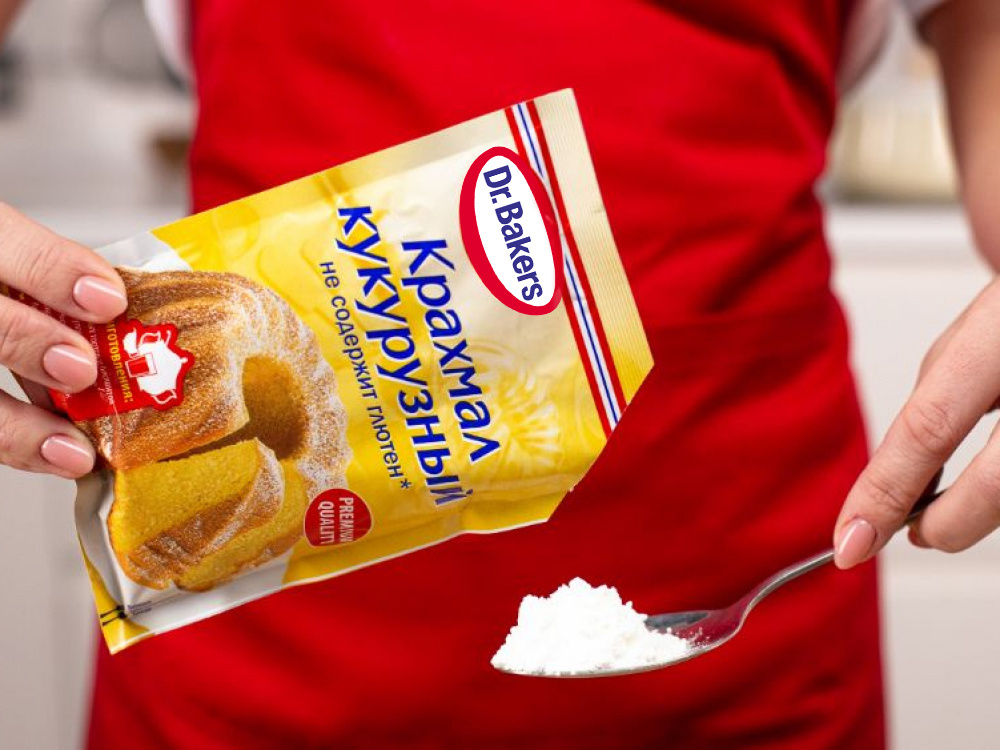 В отдельную емкость просеять муку с кукурузным крахмалом Dr. Bakers.