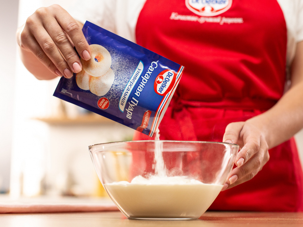 Отдельно взбиваем сметану с Сахарной пудрой и Ванилин-Интенсив Dr. Bakers до однородности.