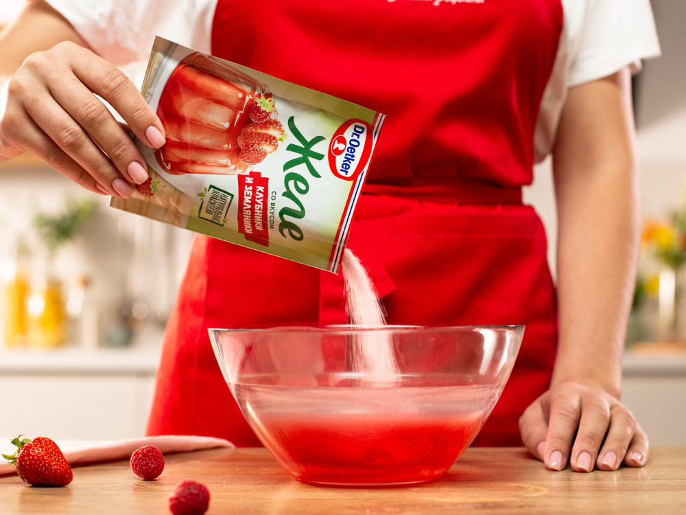 Соединяем Желе Dr. Bakers с горячей водой и перемешиваем в течение 2 минут.