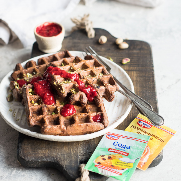 Готовые вафли подаем к столу теплыми, по желанию их можно украсить сахарной пудрой “Универсальная” Dr. Bakers. Приятного аппетита!