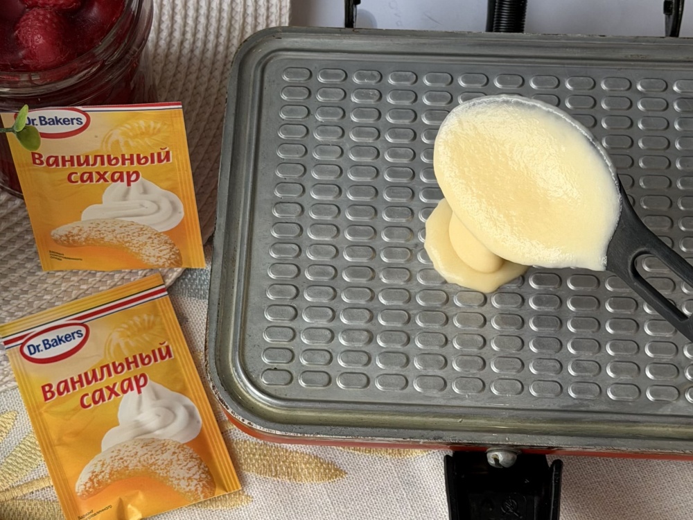 Когда тесто готово (должно быть похоже на заготовку для оладьев), достаем электровафельницу. Перед тем как печь, ее нужно немного прогреть.