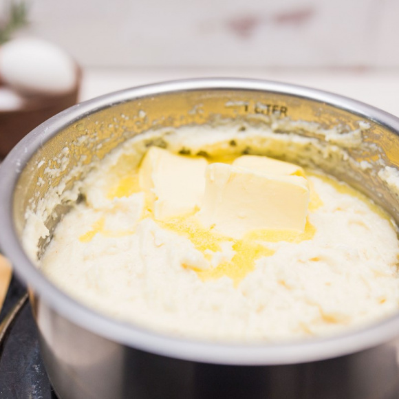 Для приготовления творожной запеканки нам понадобится готовая манная каша (ее можно заменить обычной манной крупой), варить которую лучше на молоке – это придаст готовому блюду нежный сливочный вкус. Классический рецепт приготовления манной каши: в кипящее молоко высыпать сахарный песок, дождаться полного растворения сахара, тонкой струйкой всыпать манную кашу и варить до готовности 4–5 минут. Во время варки кашу необходимо постоянно помешивать, чтобы избежать возникновения комочков.